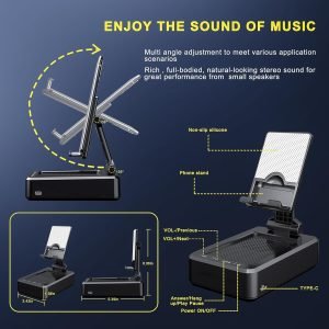 - 2 in 1 Bluetooth Speaker with Phone Stand:The phone cradle for desk provides you with portable Bluetooth speaker. The wireless Bluetooth speaker delivers stunning sound with enhanced bass, tight mid, and crystal clear highs without distortion at any volume.